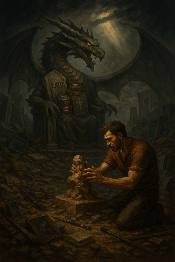 Federico II, ad esempio, non appare come personaggio storico, ma come principio di complessità: un nodo in cui convivono poesia, potere, guerra, nascita, visione. La Sicilia, allo stesso modo, non è mai folklore né identità rivendicata. È una condizione profonda, una stratificazione che agisce anche quando non viene nominata. Palermo, nel Genio, non è una città, ma una forza mentale, un’energia che resiste alla semplificazione. Alcuni lavori rimangono addosso più di altri, senza che sia facile dire perché. L’omaggio a Guttuso, per esempio, non ha nulla del tributo formale: è un dialogo silenzioso tra due artisti che hanno condiviso un’idea dell’arte come responsabilità, come gesto che non si sottrae alla storia. La Divina Commedia, attraversata da Madé, non è illustrata ma interiorizzata. Non si ha l’impressione di “vedere Dante”, quanto piuttosto di assistere a un corpo a corpo con il testo, come se le immagini fossero emerse dopo una lunga permanenza, non dopo una lettura. È un lavoro che parla di attraversamento, non di interpretazione.