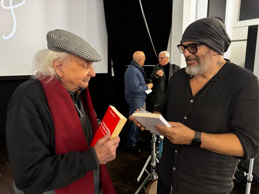 Pippo Madé, sulla splendida soglia dei novant’anni, mi ha poi donato una sua opera. Non come si concede un oggetto, ma come si affida qualcosa che ha attraversato una vita. Mi ha accolto in casa sua, mi ha fatto sedere, parlare, ascoltare. A un certo punto mi ha chiamato fratello. Senza enfasi, senza retorica. Con una naturalezza che oggi è rarissima. In quel gesto non c’era nulla di celebrativo. C’era piuttosto una forma di riconoscimento silenzioso, una continuità tra percorsi diversi ma affini nel modo di stare dentro l’arte. Madé appartiene a una generazione per cui il fare artistico non era una strategia di posizionamento, ma una necessità quotidiana, una pratica che coincideva con la vita stessa. Il suo lavoro porta ancora addosso questa qualità: non chiede attenzione, non si offre come prodotto, ma resta lì, come traccia di un attraversamento. Ricevere un’opera in questo modo, da un artista che ha vissuto il Novecento dall’interno, non è un atto simbolico né un passaggio di testimone programmato. È piuttosto un momento di sospensione. Il tempo si accorcia e categorie come giovane, vecchio, successo, carriera smettono improvvisamente di avere senso. Rimane solo l’esperienza condivisa di chi ha scelto, ciascuno a suo modo, di non separare l’arte dall’esistenza. Essere chiamato fratello da Pippo Madé non ha a che fare (solo) con l’affetto personale. Ha a che fare con qualcosa di più raro: il riconoscimento di una postura, di un’etica del lavoro, di una solitudine abitata senza rancore. In un’epoca in cui l’arte è spesso ridotta a linguaggio, a discorso o a opportunità, questo incontro ricorda che esiste ancora una dimensione essenziale, fatta di gesti semplici e irrevocabili. L’opera che mi ha donato resterà con me non come un oggetto da custodire, ma come una responsabilità: quella di continuare a praticare l’arte come spazio di verità, senza chiedere autorizzazioni e senza aspettare legittimazioni.