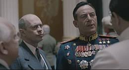C’è molto, troppo Kaurismaki in questo film di Iannucci. Oserei dire inutilmente, perché il film, grazie anche al pregevole cast, ha dei notevoli spunti creativi e gode di una discreta sceneggiatura. E c’è poco, pochissimo Monty Python, a dispetto della presenza del mitico Michael Palin nei panni di Molotov. Il risultato è una specie di ibrido tra racconto storico e commedia surreale che non dà mai la sensazione di graffiare veramente, in quanto tutti gli elementi corali paiono amalgamarsi male insieme, forse proprio a causa di questo senso di indeterminatezza che solo pochi registi – su tutti Wes Anderson – possono concedersi. Non conosco la graphic novel di Fabien Nury e Thierry Robin da cui è tratto il film, per cui non posso cogliere magari le sfumature e i riferimenti specifici. Il mio giudizio è dunque ovviamente limitato alla visione della pellicola. Insomma, a me pare che “Morto Stalin, se ne fa un altro” rappresenti l’ennesima occasione perduta nonostante le feconde premesse. Non sono riuscito a sintonizzarmi sulle frequenze da “black comedy” senza sospirare per la sgradevole sensazione di “deja vu”, né a modulare con le palesi caratteristiche da “pièce” dell’opera che pare sfocarsi costantemente negli obiettivi e nei propositi.