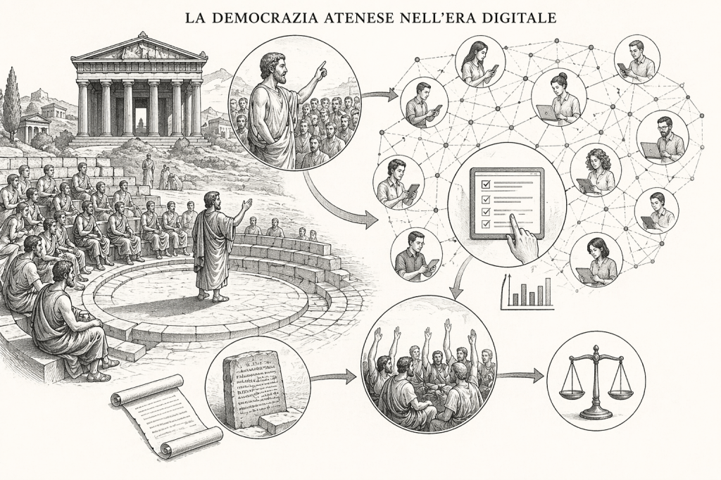 C’è un passaggio delle Supplici di Euripide che, se preso sul serio, non è un frammento di teatro antico, ma una teoria politica compressa. E, come spesso accade, proprio ciò che è più radicale resta invisibile perché è detto con troppa chiarezza. Nel dialogo tra Teseo e l’araldo non c’è solo retorica: c’è una frattura strutturale. Da una parte il potere che si concentra, dall’altra una città che esiste solo se l’uguaglianza non è una parola ma una condizione operativa. Teseo non fa filosofia: individua il punto esatto in cui il potere si deforma. Il tiranno è il peggio che possa accadere a una città, non per moralismo, ma perché piega la legge a sé. Dove governa uno solo, la legge smette di essere un dispositivo comune: diventa proprietà privata. L’uguaglianza non viene negata a parole: viene svuotata nei fatti. E qui introduce il primo nodo: la legge scritta come condizione materiale dell’uguaglianza. Dove la legge è pubblica, il povero e il ricco stanno sullo stesso piano, il debole può rispondere al potente, il piccolo può prevalere sul grande, se la giustizia regge. Non è idealismo: è equilibrio delle forze. Ma il punto decisivo arriva subito dopo. Teseo definisce la libertà con una formula che oggi risulta quasi intollerabile per la sua semplicità: «Chi vuole parlare in pubblico per fare qualche proposta utile alla città?» Qui salta tutto. Non rappresentanza. Non delega. Non intermediazione. Accesso diretto. Chi vuole parla. Chi non vuole tace. E dentro questa banalità apparente c’è un principio che abbiamo rimosso: l’accesso alla parola è accesso al potere. Non esiste altra definizione concreta di democrazia. Il resto è costruzione storica. Teseo lo dice apertamente: esiste forse un’uguaglianza maggiore? Noi, da secoli, rispondiamo di no nei fatti, continuando a chiamare democrazia un sistema fondato sulla mediazione permanente. A questo punto bisogna essere precisi: Atene non è un modello compiuto. È limitata, esclusiva, imperfetta. Ma ha centrato il principio. E quel principio non è stato superato: è stato aggirato. Per una ragione semplice: i limiti materiali. La democrazia diretta funzionava perché la scala lo permetteva: pochi cittadini, presenza fisica, tempo condiviso, spazio delimitato. Appena la scala cresce, il modello collassa. Non per errore teorico, ma per impossibilità operativa. Da qui nasce la rappresentanza. Non come progresso, ma come compromesso tecnico: delegare diventa necessario perché partecipare direttamente è impraticabile. Per secoli abbiamo scambiato questo compromesso per un punto di arrivo, trasformando una necessità logistica in un principio politico. Ma qui si apre il nodo che oggi non è più eludibile. Se il limite della democrazia diretta era tecnico, cosa accade nel momento in cui la tecnica cambia? Le infrastrutture digitali stanno progressivamente erodendo quei vincoli che rendevano impossibile la partecipazione diretta su larga scala: identità verificabili, sistemi di voto distribuiti, piattaforme di deliberazione, accesso asincrono alla discussione, possibilità di aggregare e filtrare proposte in tempo reale. Non siamo ancora a un punto stabile, ma la direzione è evidente: la scala non è più un ostacolo assoluto. Questo implica un passaggio netto: da “impossibile su larga scala” a “impossibile senza tecnologia”. E allora quella frase di Teseo smette di essere un reperto e torna ad essere una domanda operativa: «Chi vuole parlare per la città?» Oggi, potenzialmente, la risposta può arrivare da milioni di individui, distribuiti, asincroni, ma connessi dentro un sistema che rende la partecipazione tecnicamente gestibile. Questo non significa che ogni problema sia risolto: restano questioni di competenza, qualità della decisione, manipolazione, velocità, responsabilità. Ma cambia il piano: non siamo più di fronte a un limite strutturale, ma a un problema di progettazione. E questo è un salto enorme. Perché significa che la democrazia diretta smette di essere un’utopia storica e diventa un’architettura possibile. Non un ritorno nostalgico ad Atene, ma il suo compimento. Per la prima volta, ciò che era confinato dalla materia può essere esteso dalla tecnica: una democrazia in cui la partecipazione non è delegata ma esercitata, in cui la parola non è concessa ma disponibile, in cui ogni cittadino può intervenire nel processo decisionale senza passare attraverso una classe separata. Questa sarà la vera democrazia del futuro: una democrazia ateniese resa finalmente possibile dalla tecnologia. Non un perfezionamento della rappresentanza, ma il suo superamento strutturale. Non un’illusione, ma una possibilità concreta che dipende da come scegliamo di costruire gli strumenti. E, per la prima volta, la definizione di Teseo può uscire dal perimetro della polis e diventare globale: la città appartiene davvero a chi decide di prenderne la parola.