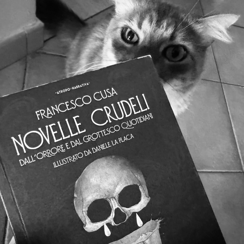 Leggere Novelle Crudeli di Francesco Cusa è come imbarcarsi in un viaggio straordinario tra dimensioni parallele: il quotidiano si deforma, il reale si frantuma, lasciando spazio a una narrativa che esplora il tempo e lo spazio con la stessa maestria con cui Cusa, musicista e brillante conoscitore dell’interplay jazzistico, guida le sue improvvisazioni musicali. Siciliano di nascita, Cusa porta nella scrittura la sensibilità e la potenza della sua terra, ma anche l’apertura di chi ha viaggiato e assorbito esperienze universali. I racconti di Novelle Crudeli evocano il grottesco e il dramma che ritroviamo nella pittura di Francisco Goya. Come nei suoi Capricci o nel ciclo delle Pitture nere, anche Cusa cattura l’assurdo e il perturbante del vivere umano. Zio Carmelo, con la sua immobilità da “uomo-gallina”, potrebbe essere una figura uscita da un incubo goyesco, simbolo di un’umanità deformata dall’inerzia e dall’assurdità. Allo stesso tempo, la vividezza e il realismo delle descrizioni richiamano l’energia narrativa delle tele di Renato Guttuso, con la loro capacità di ritrarre un mondo vivido e pulsante, intriso di vita e di tragedia. Cusa, come Guttuso, sa rendere universale anche la realtà più intima e locale, dalla Sicilia rurale ai microcosmi familiari saturi di conflitti inespressi. La sua capacità di attraversare generi e linguaggi è evidente non solo nella scrittura, ma anche nella sua produzione musicale. Racconti come Zio Carmelo o Alfredo riecheggiano la stessa tensione emotiva e narrativa che si trova in brani come Shardula e Cherry Manson, dove la libertà espressiva incontra una struttura ben definita, creando un intreccio armonico di caos e ordine. In Novelle Crudeli, questa sintesi si traduce in storie che oscillano tra il grottesco e il surreale, ma sempre ancorate a una riflessione profonda sull’umano. Il confronto con Vic, un’altra opera letteraria di Cusa che ho avuto il piacere di leggere e recensire, mostra come l’autore sappia declinare il suo stile in modi diversi: se in Vic il tono è più visionario e lirico, in Novelle Crudeli emerge una vena più tagliente e brutale, senza però perdere quella qualità poetica che rende unico il suo sguardo. Come scrive in una sua poesia, “La luna si riflette sulla pelle screpolata del mare / e io tento di non essere naufragio”, c’è sempre, nel suo lavoro, una lotta tra la bellezza e la rovina, un tentativo di trovare equilibrio nel disordine. I personaggi di Novelle Crudeli sono archetipi e al contempo individui unici, resi vivi da una scrittura che mescola registri diversi con l’agilità di un musicista che improvvisa senza mai perdere il filo della melodia. Si pensi a Psicopatologia del serial killer, una delle sue composizioni musicali, in cui il ritmo frenetico si intreccia a momenti di pausa che sembrano sospesi nel vuoto. Lo stesso accade nei suoi racconti: ogni frase pulsa di un’energia che sembra provenire da un luogo al di là della pagina, come se il tempo stesso si fermasse per un istante, prima di riprendere la sua corsa. L’interplay è centrale anche nella scrittura di Cusa: ogni elemento dialoga con l’altro, creando un’armonia sottile ma potente. Le illustrazioni di Daniele La Placa, per esempio, non sono semplici accompagnamenti visivi, ma veri e propri strumenti che suonano insieme al testo, amplificando il senso di straniamento e intensità. In definitiva, Novelle Crudeli non è solo una raccolta di racconti, ma un’esperienza multidimensionale che attraversa generi, linguaggi e media. È un’opera che riflette la complessità del suo autore: un siciliano radicato e al tempo stesso cittadino del mondo, un viaggiatore che sa trasformare ogni storia, ogni nota, ogni parola in un’opportunità per esplorare l’insondabile. Ringrazio di cuore Francesco Cusa per questo dono. Le Novelle Crudeli sono un viaggio sensoriale che continua a sorprendermi e che, mentre le leggo ad alta voce, incantano anche Olaf, il mio fidato amico, che mi ascolta tranquillo acciambellato accanto a me. Le storie di Cusa mi ispirano nuovi disegni, guidandomi in un mondo dove la parola e l’immagine si intrecciano, creando qualcosa di unico. Grazie, Francesco, per aver aperto una finestra su questo universo. Claudia Scavone 29/11/2024