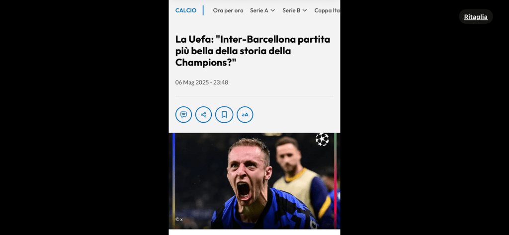 Io le ho vissute tutte. Tutte. Da quando avevo 5 anni. Ho sofferto. Ho visto il saccheggio della squadra di Stato, la Fiat, l’ho vista fregarsi una marea di scudetti quando ancora era possibile farlo impunemente. Questa sera l’Inter ha superato quella del 2010. Sono emozioni che non si possono descrivere. Questa è l’EPICA. L’Epica. Sì, possiamo dire di aver vissuto uno degli eventi calcistici più importanti di tutti i tempi. Sì, possiamo dire di aver rivisto Italia-Germania 4 a 3, ossia di uno degli eventi che rimarranno nella storia. Ottenere un successo simile contro una squadra del genere, che ha il giocatore più forte al mondo, centuplica il valore di questa impresa. L’Inter a pezzi, con una squadra costruita con i parametri zero, con i suoi vecchietti eroici, realizza il sogno di ogni tifoso interista: vincere eroicamente, scrivere una pagina di storia, e generare uno spappolamento di fegato nel popolo gobbo. Escludo le altre tifoserie, perché penso che di fronte a una partita del genere, ciascun tifoso non possa che genuflettersi di fronte a questa meraviglia. Coi gobbi ho un conto in sospeso: con loro, salve qualche rara eccezione, sarò sempre caustico. Sono anni che gettano fiele. E il karma si ritorce contro. Alcuni si ricorderanno la mia profezia: pagherete caro. Il Barcellona prende ancora scoppole dall’Inter: arroganti, altezzosi, miliardari… andate ancora a casa. Ora. Siamo alla seconda finale in tre anni. Vada come vada. L’Inter è una splendida realtà mondiale. Con gli ulteriori introiti della finale faremo una campagna acquisti sensata e ringiovaniremo l’organico. Certamente saremo protagonisti per anni e anni sotto la guida di Simone Inzaghi, uno dei più grandi allenatori del mondo. Di certo ci sono dei segnali: il Barcellona in semifinale, Ibra e Conte che vanno via perché non ritengono la squadra alla loro altezza, Frattesi che voleva andare via e diventa protagonista, Monaco… ma…
